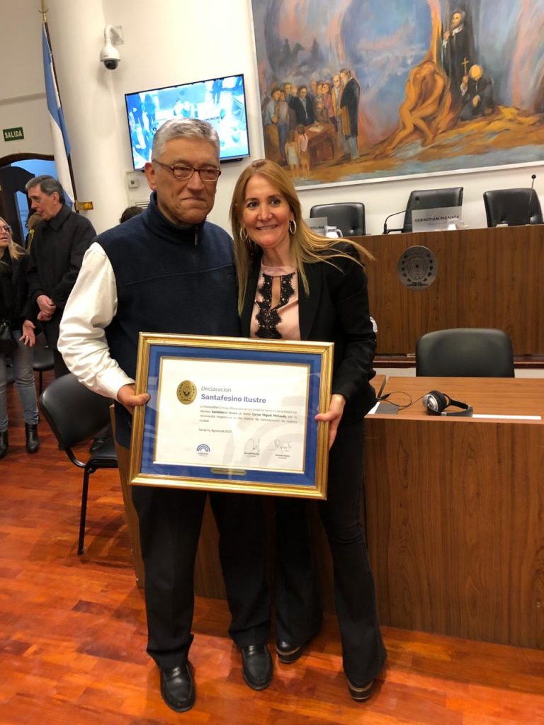 Se podrían mencionar diversas maneras para poder describir al actual periodista de Radio EME, que conduce de lunes a viernes el programa informativo «Estilo EME», pero desde el Concejo Municipal de Santa Fe tuvieron una mejor idea para homenajear su carrera. A partir de una propuesta presentada por la Concejala por el Partido Justicialista Marcela Aeberhard, se decidió nombrar reconocido locutor como «Ciudadano Ilustre» de la ciudad de Santa Fe.