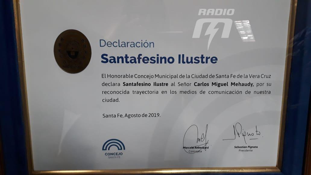 Por su parte, Marcela Aeberhard, la encargada de gestionar y hacer realidad este reconocimiento, comentó los motivos de haber elegido a Carlos Mehaudy como «Santafesino Ilustre»: «El nos da un ejemplo permanente del trabajo de la comunicación veraz y concreta. Es un honor que el proyecto de hacer a Carlos Mehaudy un santafesino ilustre. En toda su historia demostró que en todos los desafíos se predispone uno capacitándose, preparándose, armando equipos, ese el gen santafesino que queremos destacar en él».