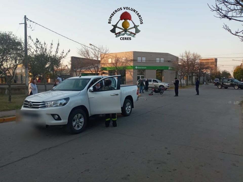 Bomberos Voluntarios de Ceres procedió a trasladar hacia el hospital local a sus ocupantes que solo se produjeron lesiones leves.