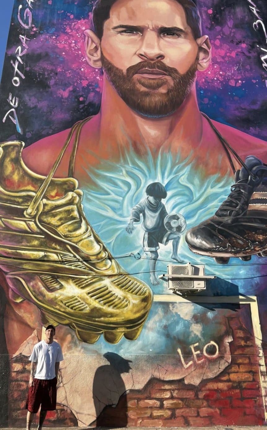 Cabe recordar que Thiago, Mateo y Ciro, los tres hijos de la Pulga, visitaron sorpresivamente la pintura en la previa de la final de la Copa América ante Brasil y posaron delante de la obra para una «storie» que Messi publicó en sus redes.