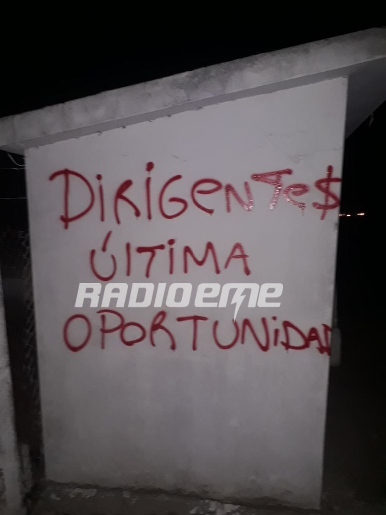 Aparecieron pintadas en la zona de Casasol, el lugar de entrenamientos del plantel en la Ruta Nacional 19. La amenaza fue escrita en una parada de colectivos, a metros del ingreso al predio.