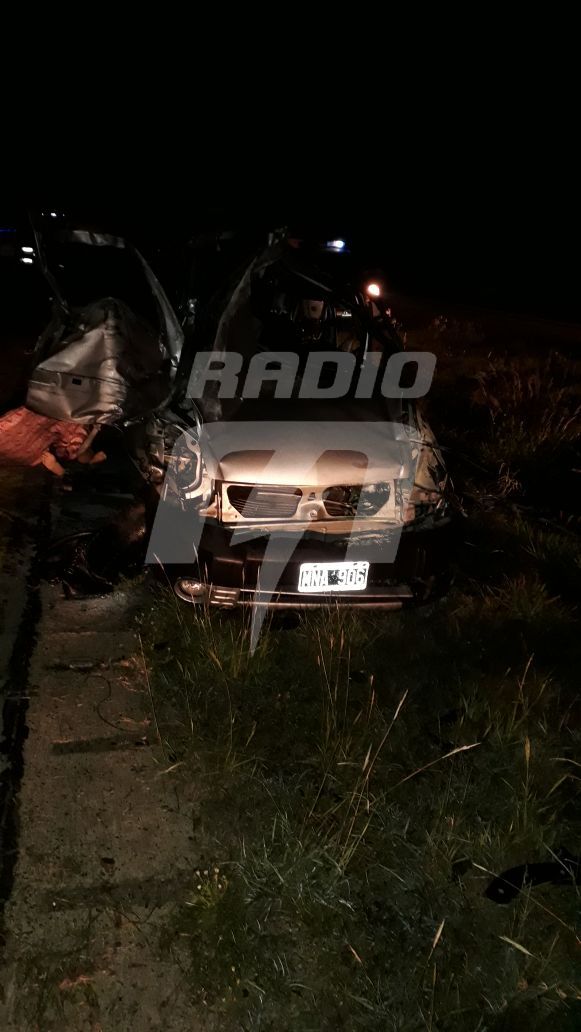 Eran las 5.25 cuando una Renault Kangoo fuera de control en la autovía Gervasio Artigas altura KM 301 en la mano norte-sur, chocó contra un colectivo de larga distancia que iba desde Paraguay hasta La Plata.