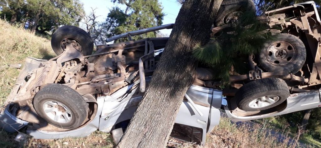 En principio no hay intervención de otro vehículo y se intenta determinar mediante las pericias cómo se produjo el vuelco de la Chevrolet S10.