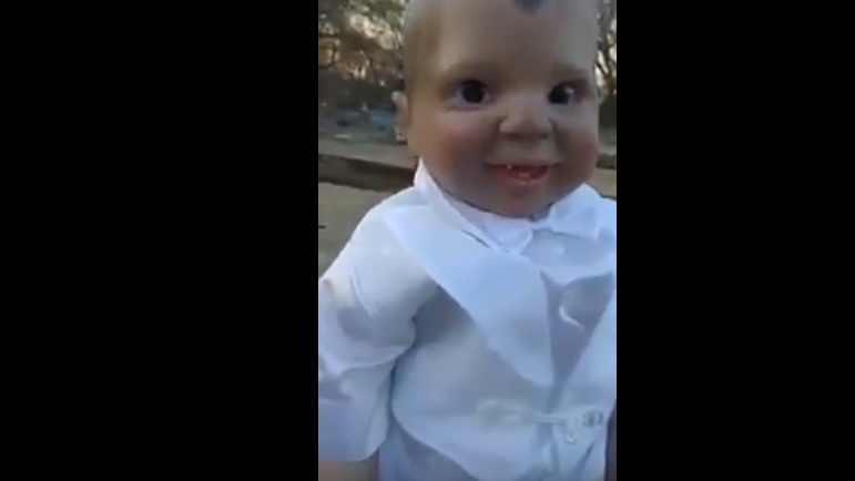 El extraño muñeco apareció en una necrópolis y generó pánico en todos los que vieron las imágenes. El video.