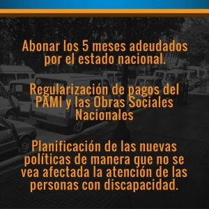 Las instituciones y los transportistas prestadores de servicios para personas con discapacidad vienen soportando un incremento muy importante en los costos operativos, obligaciones fiscales y costo de vida. Es por ello que se movilizan el día martes 20 de marzo frente al Ministerio de Salud de la Nación y en la ciudad de Santa Fe la cita será a las 10.00 en Av. Alte Brown Parque de la Locomotora.