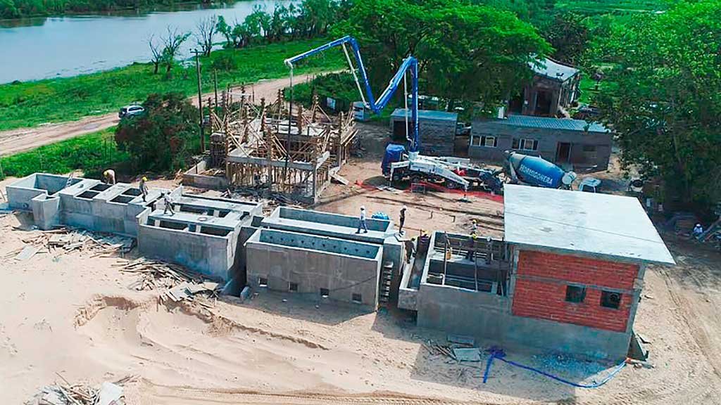 Respecto de la obra de toma, se finalizará con el preparado del terreno y ya se instaló la estructura de hormigón conformada por pilotes que abastecerán al acueducto de agua cruda del arroyo Ubajay. Además, se encuentra en su etapa final la colocación de caños que conducirán el agua sin tratamiento a la planta potabilizadora. Allí se procesará el líquido para luego distribuirlo por las redes a las conexiones domiciliarias.