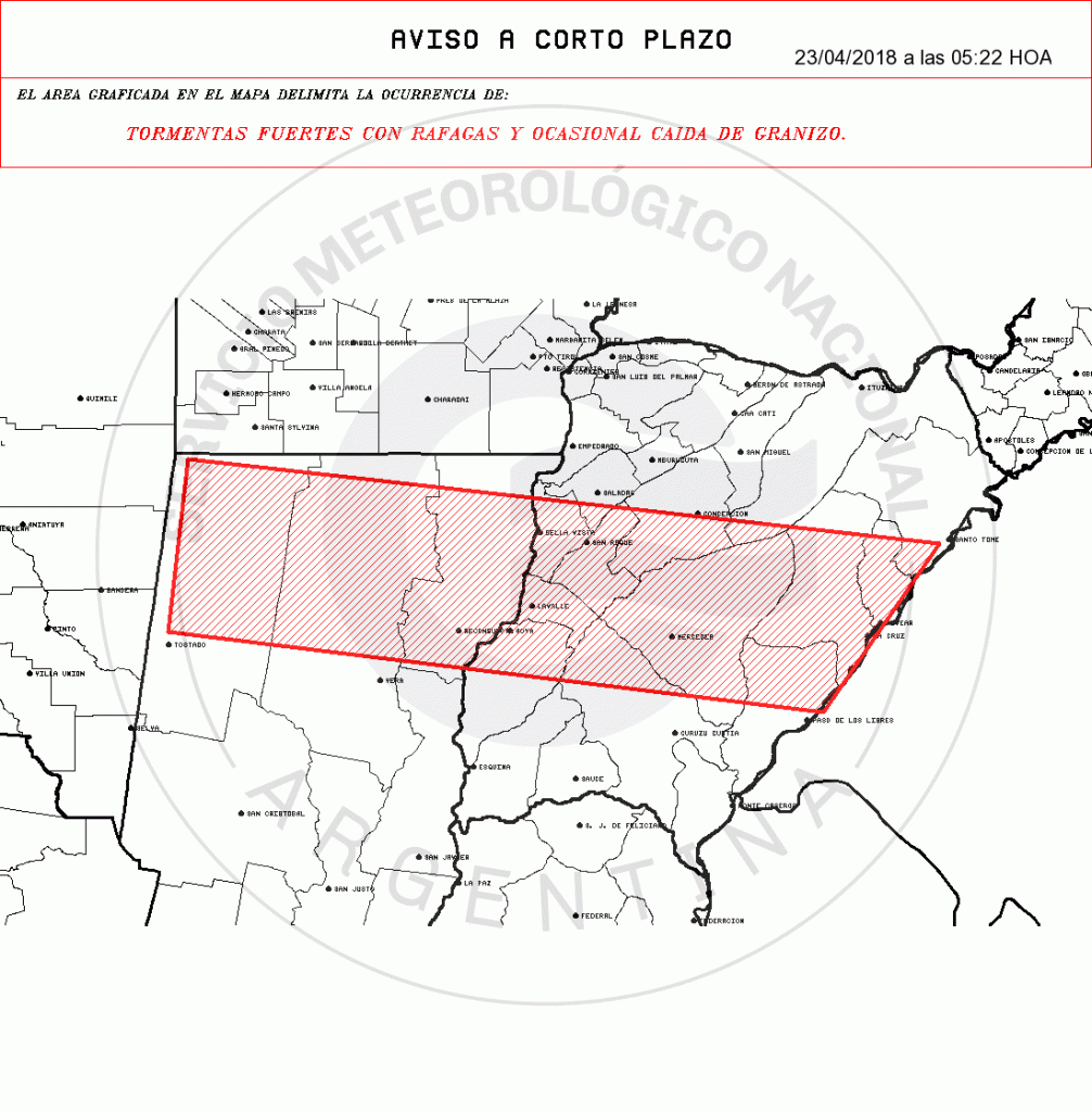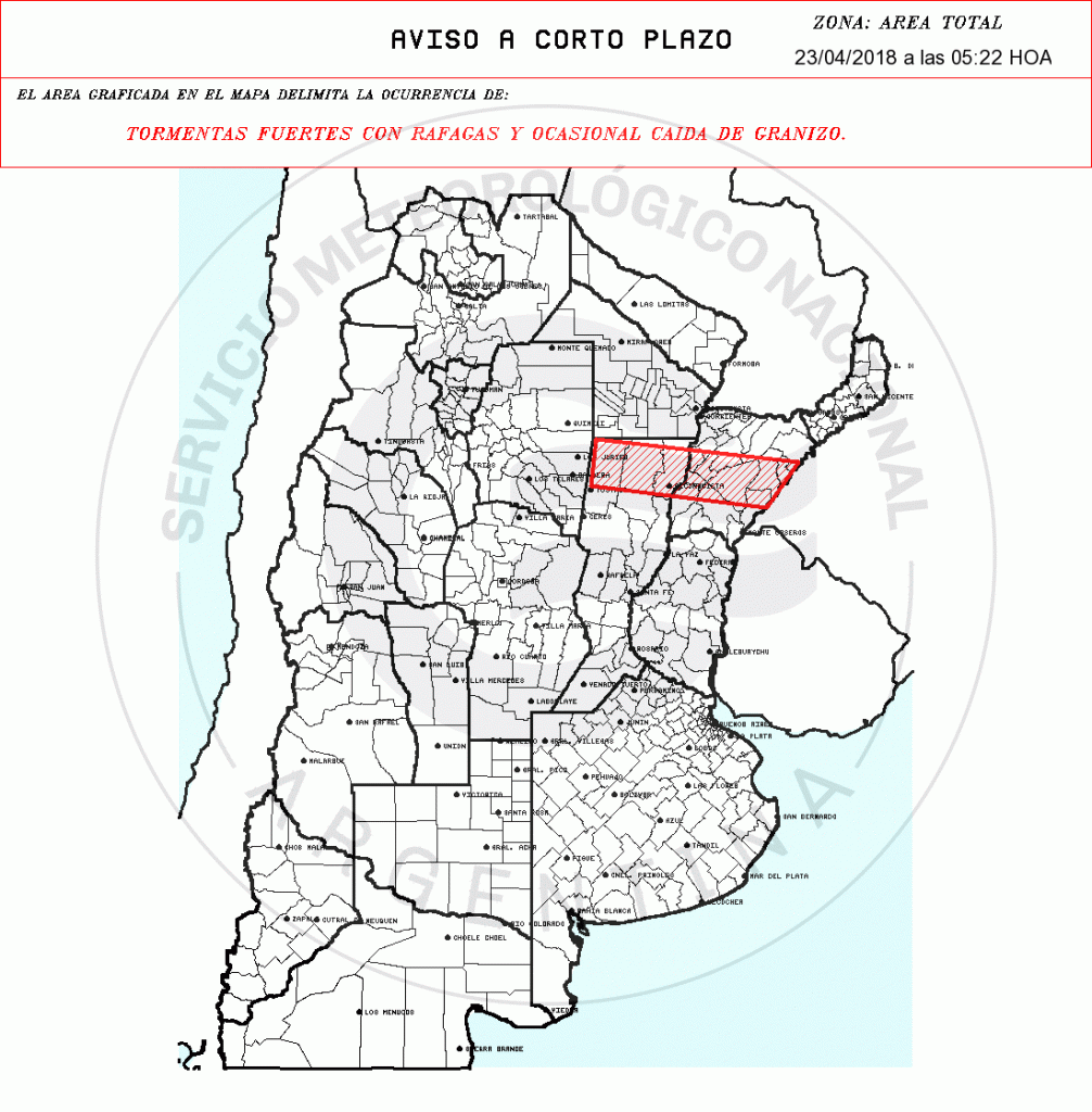 A las 5.22 de este lunes, el Servicio Meteorológico Nacional lanzó un alerta meteorológico para nuestra región.