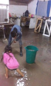 Las viejas y precarias instalaciones donde funciona la Vecinal con Copa de Leche, Escuela de Fútbol y demás actividades se vió deteriorada con el ingreso de agua a partir de las grandes precipitaciones de las primeras semanas de mayo.