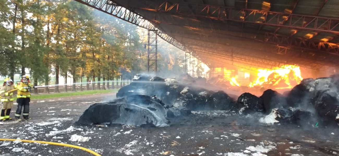El fuego tomó gran parte de los galpones generando un daño irreparable en casi todo el galpón donde se guardan los fardos.
