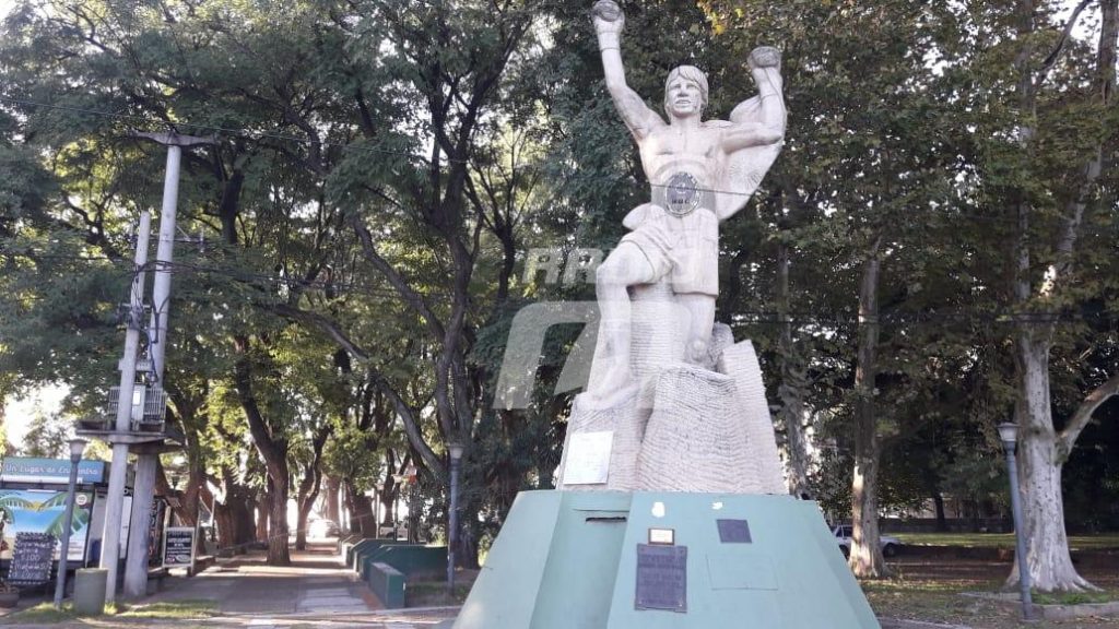 En la mañana del martes, el movimiento «Les Subfluviales» colocó una placa en la estatua que Carlos Monzón tiene en la costanera santafesina.