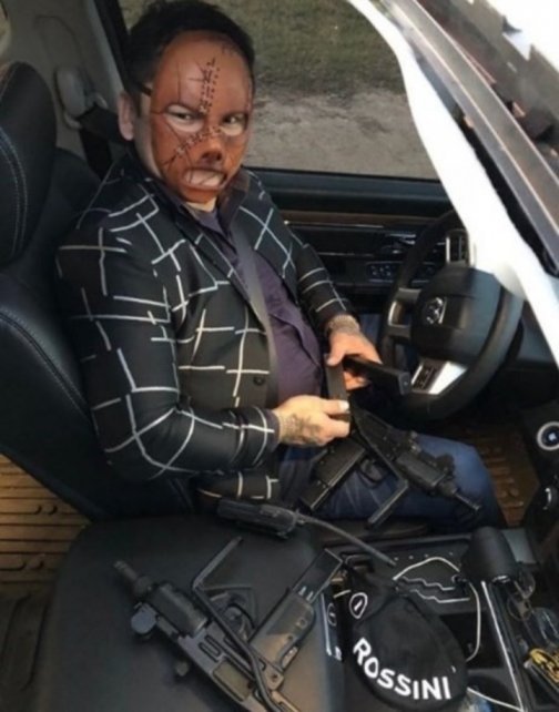 Una imagen suya, con una careta con cicatrices y dos armas de grueso calibre y cartuchos, despertó curiosidad y trajo polémica. Varios comentarios lo tomaron a broma, aunque otros lo repudiaron.