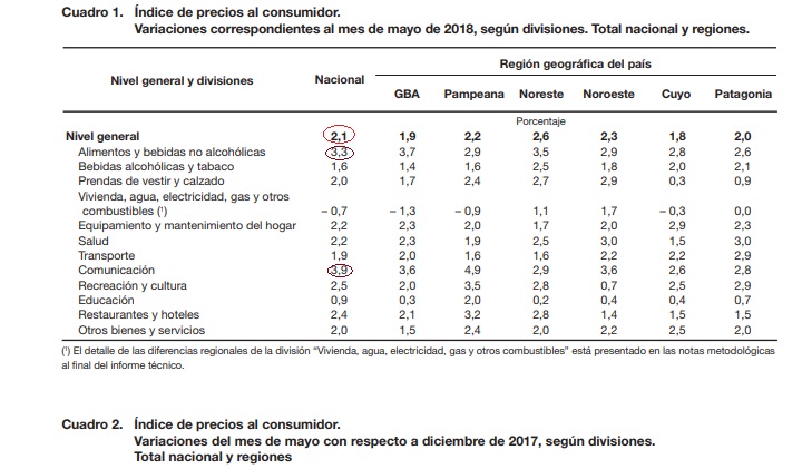 La inflación de mayo fue del 2,1% según el INDEC, un nivel que se ubicó por debajo de lo estimado por consultoras privadas, que calculaban entre 2,4% y 2,8%.