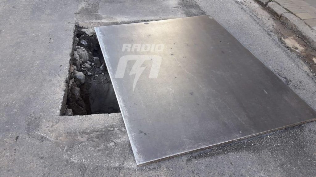 En Urquiza y Tucumán Aguas Santafesinas colocó un chapón para tapar un pozo que dejó luego de hacer un trabajo. La tapa estaba puesta de manera provisional hasta que se asfalte nuevamente el pavimento.