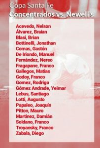 En horas de la mañana de este sábado, la institución rojiblanca dio a conocer la lista de los 20 jugadores que estarán disponibles para el duelo ante Newell’s por Copa Santa Fe, encuentro que corresponda a la Vuelta de los Cuartos de Final, destacando que en el duelo de Ida igualaron 2-2.