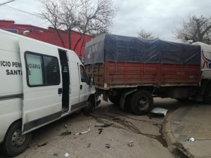 El hecho sucedió en la intersección de las calles Pellegrini y España, en la ciudad de Venado Tuerto. Como consecuencia del impacto, dos penitenciarios resultados heridos, mientras que otros dos y los cuatro detenidos que iban a bordo, resultaron ilesos.