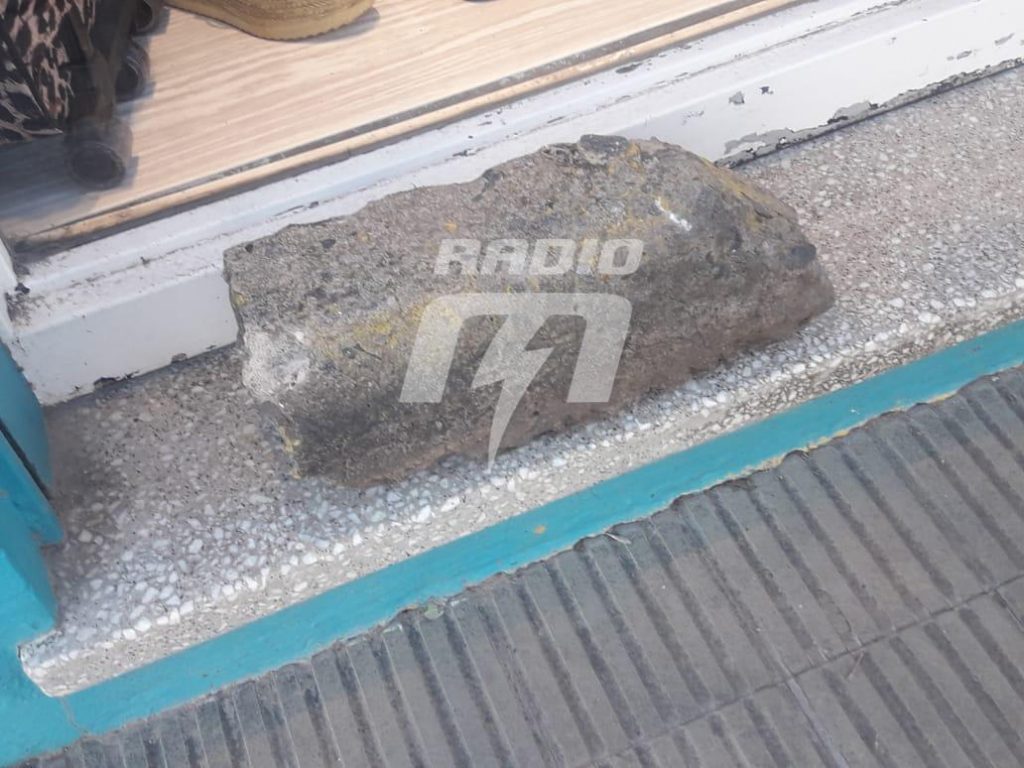 «Es un pedazo grande para asegurarse romper el vidrio», dijo el encargado de la zapatería a Radio EME. Sin embargo no lograron llevarse más que «una campera de la vidriera».