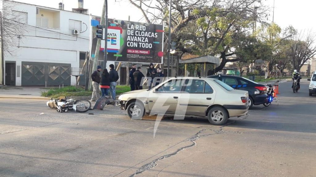 Una moto de 125 cc. que iba circulando con sentido sur-norte por Av. Perón cruzó el semáforo en rojo y un auto Peugeot 504, que cruzaba la avenida por Catena, la atropelló.