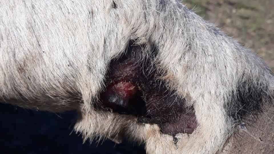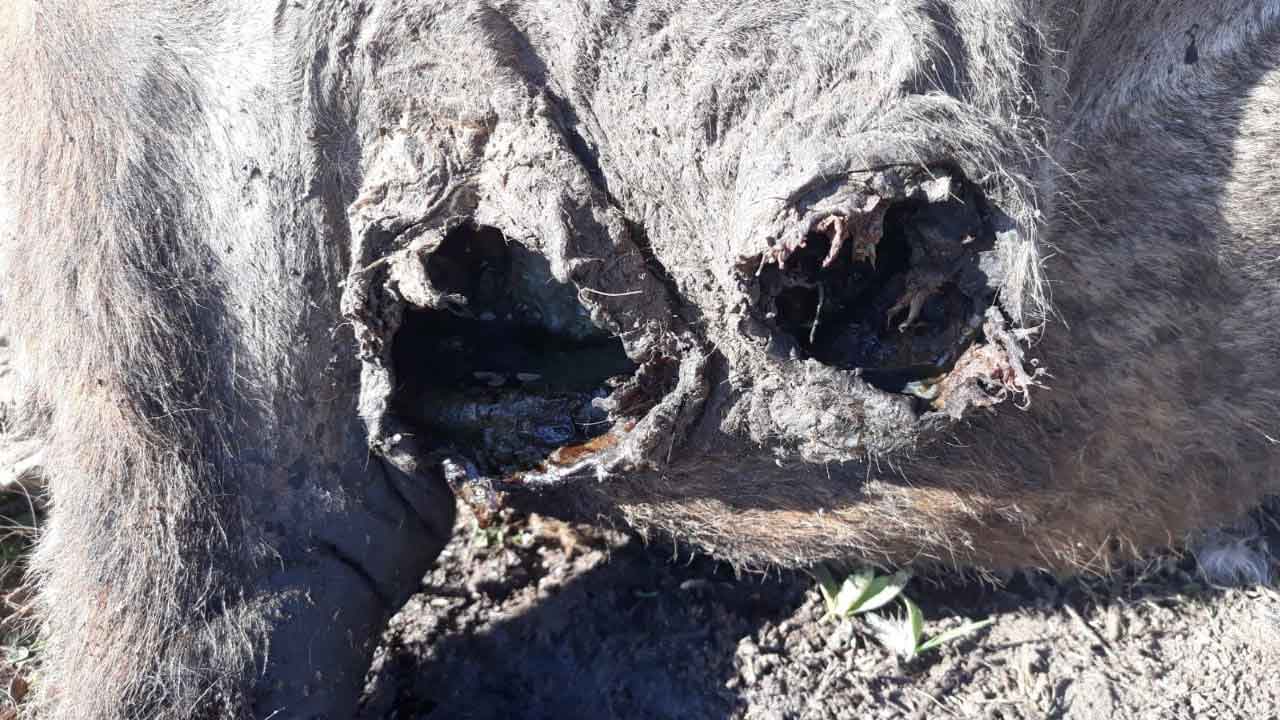 De acuerdo a las imágenes, presenta mutilaciones en la cabeza, las ubres y las patas.