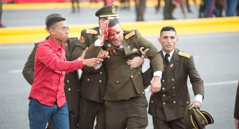 «Una de las aeronaves sobrevoló la tribuna presidencial con el fin de activar a distancia la sustancia explosiva (…), pero con la instalación de equipos inhibidores de señales se logró desorientar al dron, activándose fuera del perímetro planificado por los sicarios», explicó Reverol.