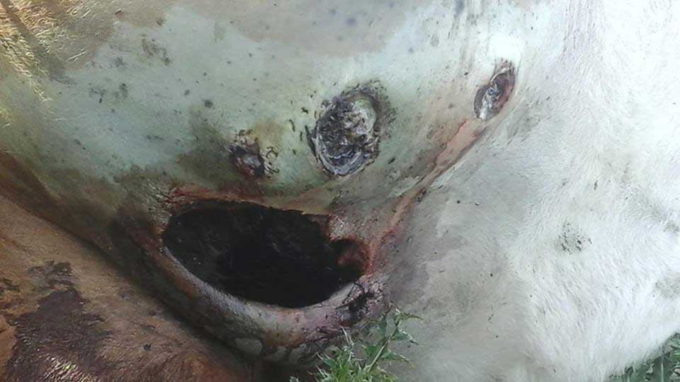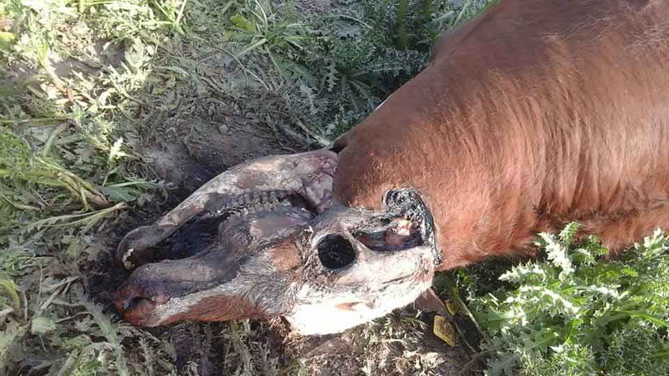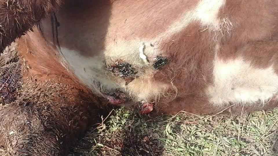 El animal presentaba cortes en la cabeza, de donde le habían arrancado las orejas, la lengua y las ubres.