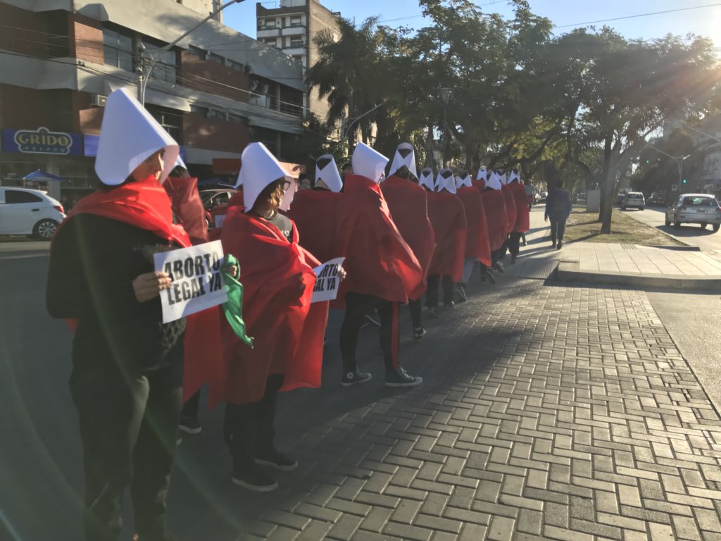 Vestidas como los personajes de la serie «El cuento de la Criada», santafesinas exigieron por el derecho de las mujeres a decidir sobre sus cuerpos.