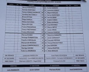 17 minutos del segundo tiempo, Joel Soñora por Pablo Guiñazú y Aldo Araujo por Juan Ramírez.