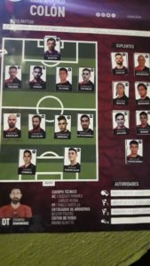 COLÓN: 1-Leonardo Burian/ 2- Gustavo Toledo, 27- Erik Godoy, 6- Emanuel Olivera y 31- Gonzalo Escobar/ 21- Leonardo Heredia, 18- Franco Zuculini, 5- Matías Fritzler y 28- Marcelo Estigarribia/ 12- Tomás Chancalay y 11- Javier Correa. DT: Eduardo Domínguez.