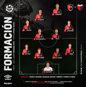 NEWELLS: 1- Alan Aguerre/ 4- Iván Piris, 29- Stéfano Callegari, 24- Fabricio Fontanini y 28- Mariano Bíttolo/ 15- Joel Amoroso, 21- Juan Ignacio Sills, 5- Hernán Bernardello y 16- Víctor Figueroa/ 26- Héctor Fértoli y 22- Lisandro Cabrera. DT: Omar De Felippe.