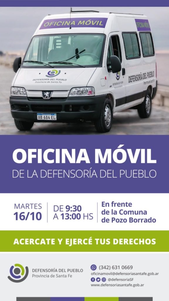 La Oficina Móvil de la Defensoría del Pueblo de Santa Fe llega a Pozo Borrado y Villa Minetti para atender demandas de vecinos de ambas localidades.