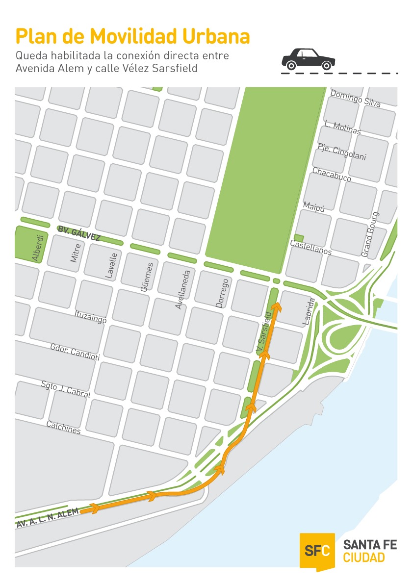 En el marco del Plan de Movilidad Urbana, la apertura y semaforización permitirá transitar desde el sur hacia el norte sin atravesar el barrio Candioti Sur. Asimismo, este cambio posibilitará la unión de la futura ciclovía de Alem con la existente en Vélez Sarsfield.
