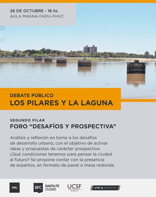 Este viernes 26 de octubre, se realizó en la Facultad de Arquitectura, Diseño y Urbanismo de la Universidad Nacional del Litoral, el foro «Desafíos y prospectiva», una nueva jornada en el marco del debate público «Los Pilares y la Laguna» que es co-organizado por el Gobierno de la Ciudad de Santa Fe, la Universidad Nacional del Litoral, la Universidad Católica de Santa Fe y la Universidad Tecnológica Nacional.