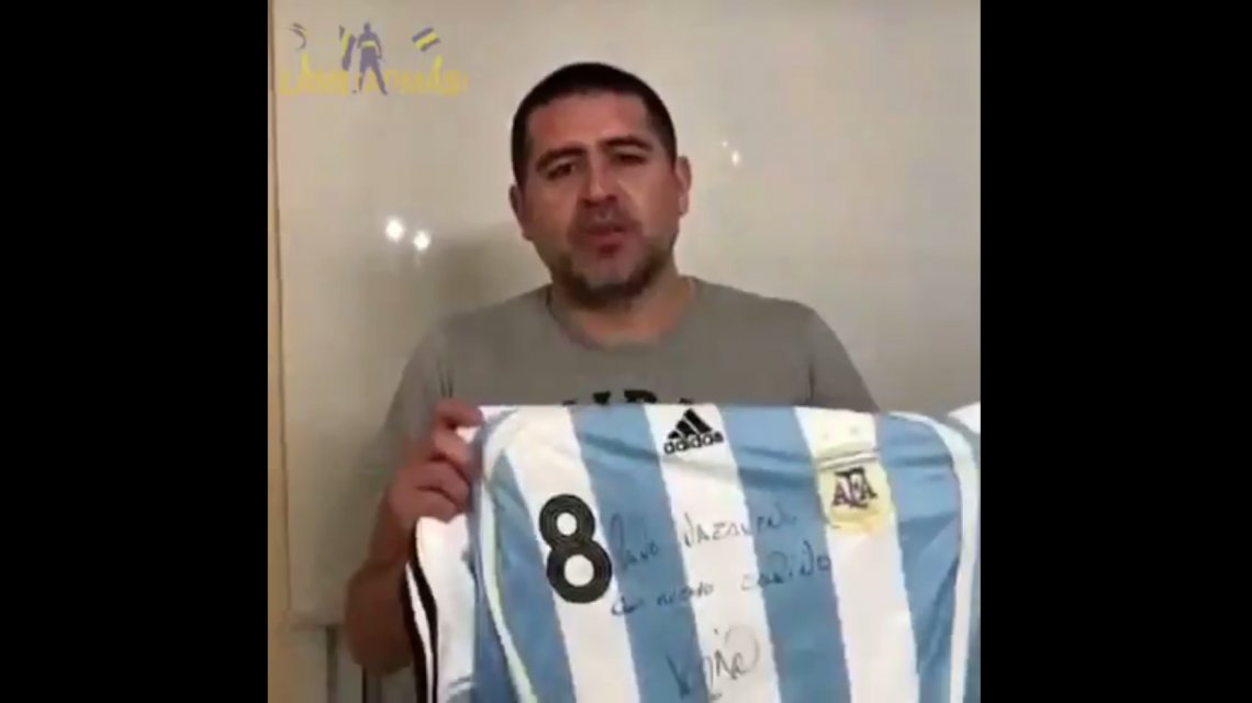 «Nazareno, te felicito, te mando un beso muy grande. Espero que estés disfrutando un día tan lindo como el de hoy. Te mando la camiseta argentina, espero que la disfrutes mucho. Abrazo, campeón», dijo el ex futbolista en un video dado conocer la cuenta de Twitter LaMitadMas1.