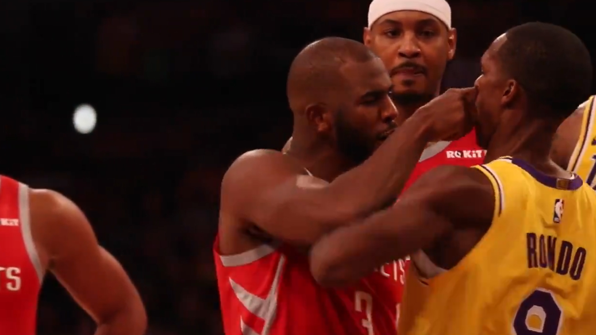 La liga confirmó que el comité disciplinario evaluó un vídeo en el campo que mostraba una toma en la que Rondo parecía que escupía en la cara de Paul. El personal de vídeo de los Rockets tomó las imágenes en el campo durante el partido, que luego compartieron con los responsables de la oficina de la NBA.