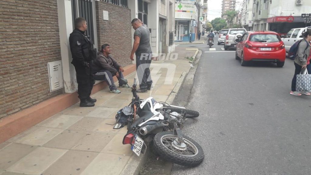 El conductor de un utilitario y un motociclista se cruzaron en 1 de Mayo y Rioja. Quien conducía el birodado dijo en Radio EME que «pasa primero la camioneta pero yo tenía el pasó». Por tal motivo discutieron fuerte y el quien mandaba el vehículo de mayor porte encerró a la moto y lo tiró al piso.