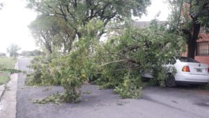 El propietario del auto confirmó que afortunadamente no fue dañado ni la carrocería ni los vidrios ya que por fortuna, las ramas más pesadas no están sobre él. Sí esperan la llegada del personal municipal que ayude a removerlas para liberar el tránsito.