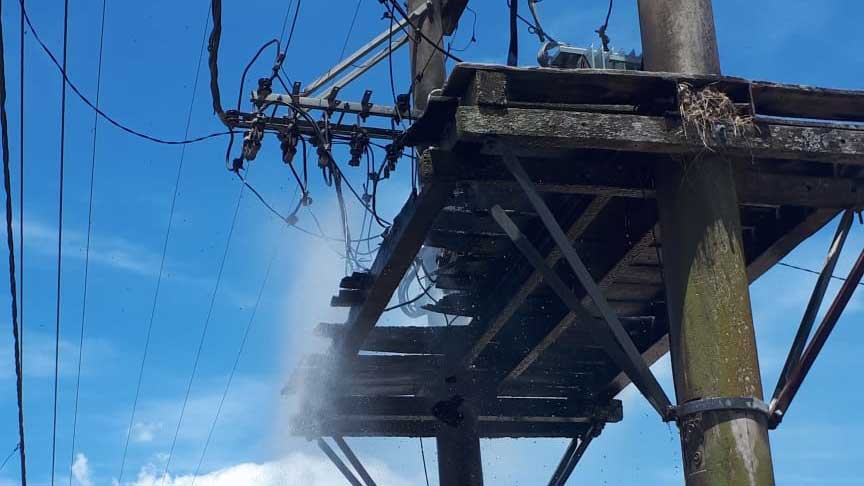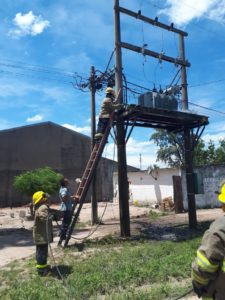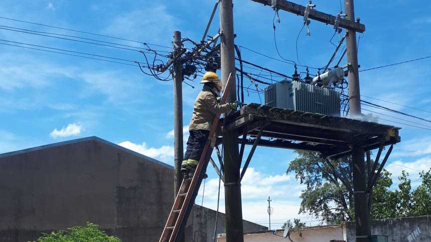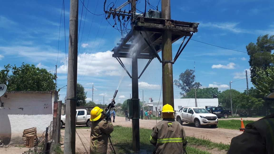 El incendio en un transformador eléctrico ubicado en barrio San Antonio de Villa Minetti demandó un operativo conjunto de personal de Bomberos, Policía y Empresa Provincial de la Energía (EPE).