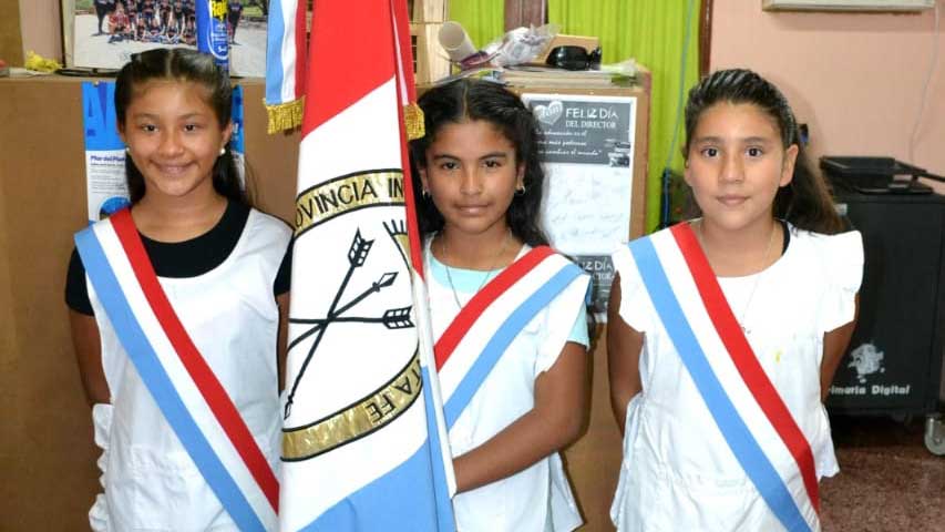 Bandera de la Provincia: abanderada Dafne Casco, primera escolta Manuela Barrios, segunda escolta Delfina Videla.