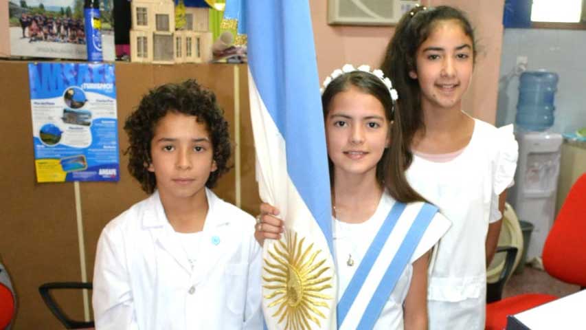 Bandera de la Nación: abanderada Antonela Bardella Curti, primer escolta Brian Palacios, segunda escolta Valentina Acuña.