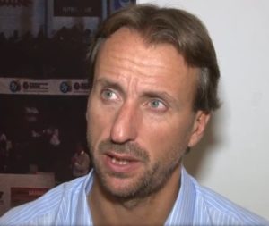 - Sebastián Ginóbili, ex campeón con Libertad de Sunchales, al aire en la previa.