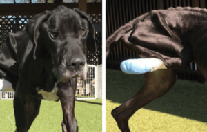 Firpo, un Gran Danés, se vio forzado a comer una de sus patas luego de que sus dueños lo dejaran encadenado y sin comida en la azotea de una casa en los Estados Unidos.
