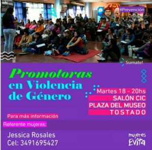 La actividad se desarrolla a partir de la hora 20 en el Salón del Centro Integrador Comunitario, organizado por el Movimiento Evita y en esta ocasión coordinador por Majo Poncino, referente provincial de Evita Mujeres.