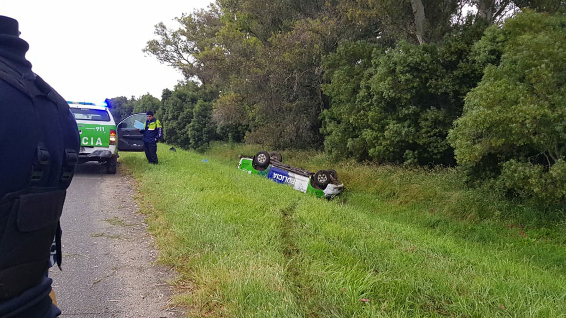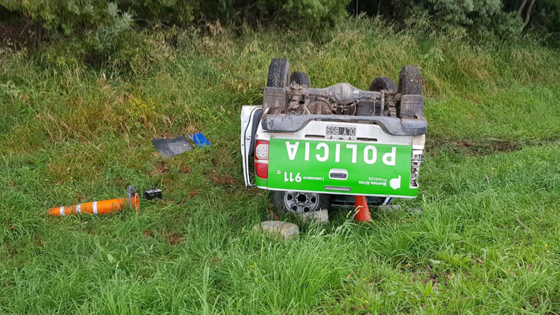 A la altura del kilómetro 382 de la Autovía 2, «volcó un móvil policial». La chapa alfanumérica que observaron los ocasionales testigos que circulaban por la ruta mano hacia «La Feliz» era «OLY 859».