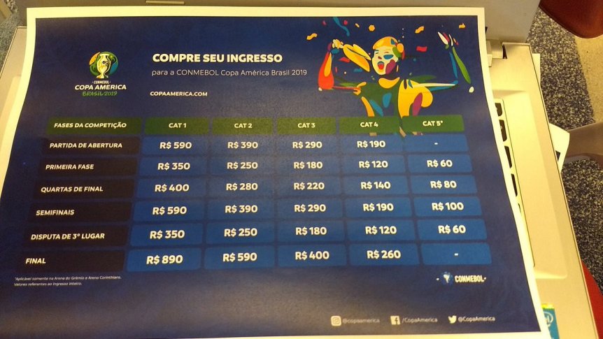 Las entradas para la Copa América de Brasil 2019, a disputarse entre el 14 de junio y el 7 de julio, costarán entre 600 -las más baratas de la fase de grupos- y 8600 pesos -las más caras de la final-. El torneo se desarrollará en seis estadios en Río de Janeiro, San Pablo, Belo Horizonte, Porto Alegre y Salvador.