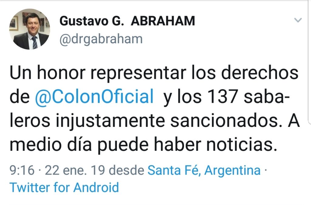 Colón defenderá a los 137 hinchas sancionados la semana pasada por el Ministerio de Seguridad de la Nación. Los simpatizantes sabaleros no podrán ingresar durante 1 año a los estadios en el fútbol argentino luego de ingresar al Presbítero Grella el 11 de agosto pasado.
