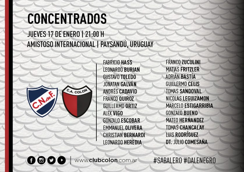 Colón enfrenta a Nacional de Uruguay esta noche en un nuevo amistoso de preparación para la reanudación de la Superliga. El partido comenzará a las 21:15 en el Estadio Artigas de la ciudad de Paysandú con transmisión de Radio Eme desde las 20.