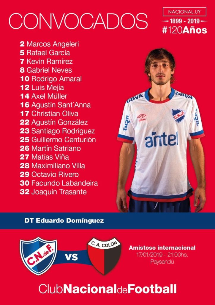 El técnico de Colón, Julio Comesaña, definió el equipo titular con modificaciones en relación al triunfo 2 a 1 del amistoso anterior frente a Rampla Juniors. Los 11 serán Leonardo Burián/ Alex Vigo, Jonathan Galván, Andrés Cadavid y Gonzalo Escobar/ Mateo Hernández, Matías Fritzler, Franco Zuculini y Marcelo Estigarribia/ Leonardo Heredia y Luis Miguel Rodríguez.