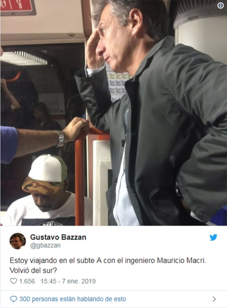 Si bien el presidente Mauricio Macri sigue de vacaciones en Villa La Angostura, un usuario de Twitter aseguró haberlo visto viajando en la línea B del subte.