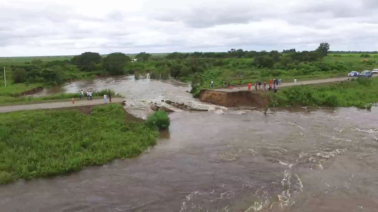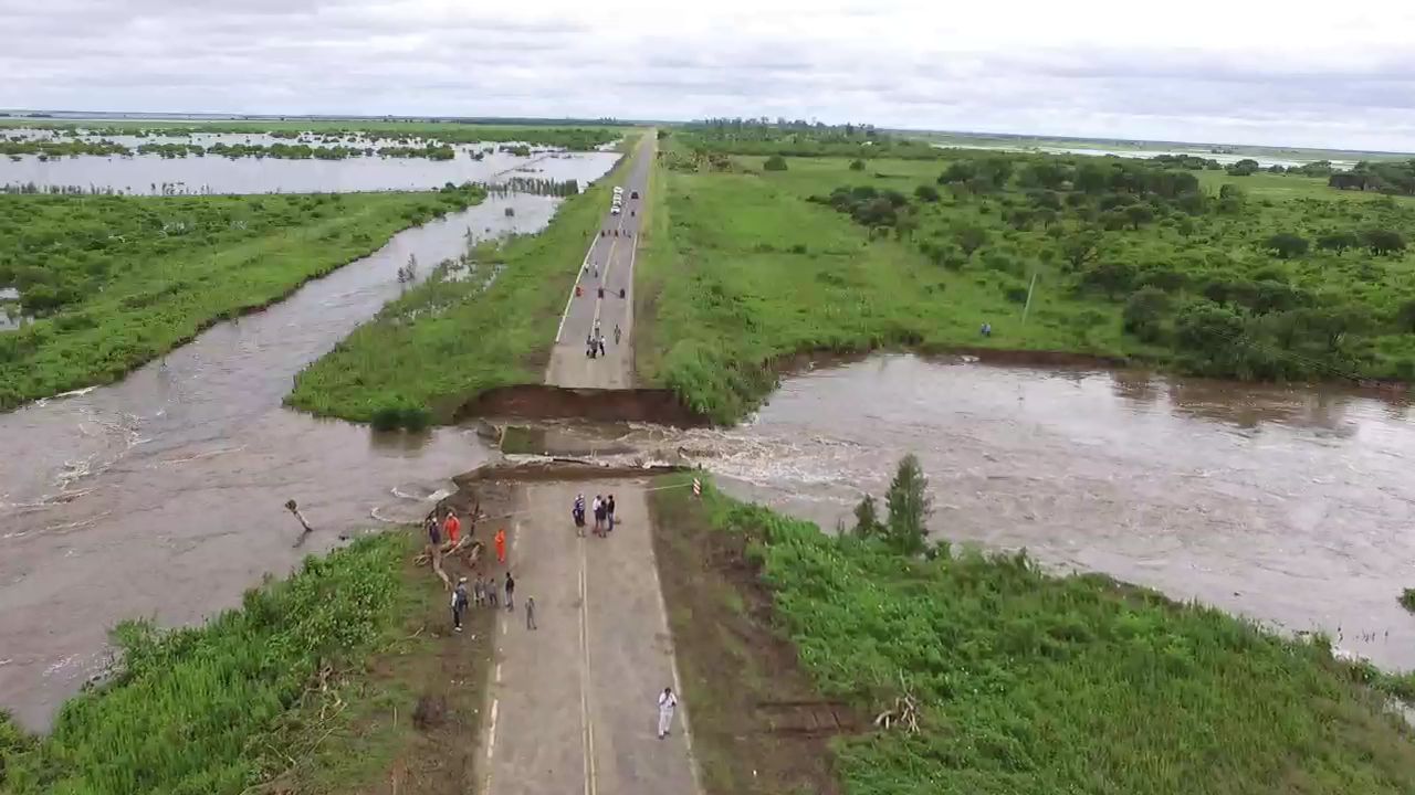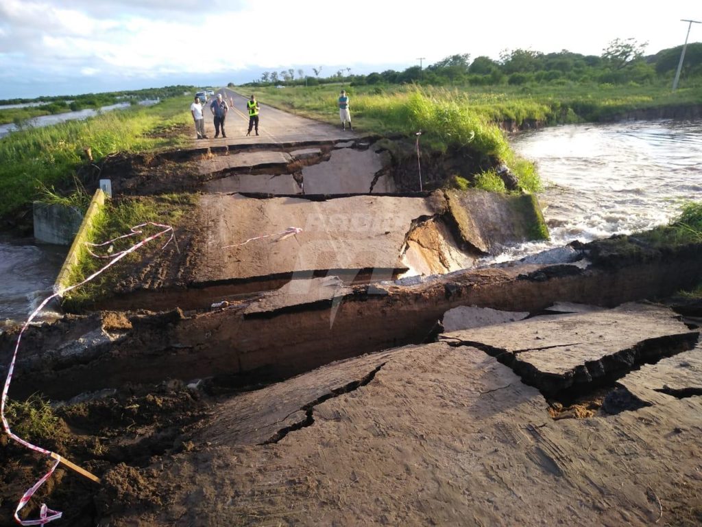 El corte fue producto de un socavón que se originó por el violento avance de una gran masa de agua, que en primera instancia hundió todos los laterales de la ruta y sus banquinas, luego siguió el proceso de erosión y finalmente el agua lo atravesó todo. Un segmento de hormigón de entre 20 y 30 metros se rompió y cedió al paso del agua.