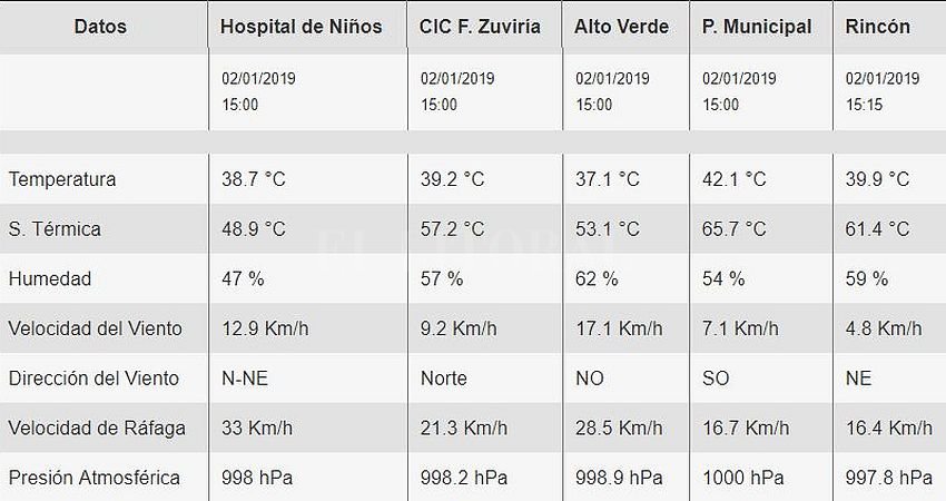 Algunos podrán decir que la sensación térmica registrada se produce por la gran cantidad de cemento que rodea el lugar, y la ubicación: pleno centro de la ciudad. No obstante, en Rincón, la temperatura marcó 61,4°C. El CIC de Facundo Zuviría estaba «un poco más fresco», registrando 57,2°C.