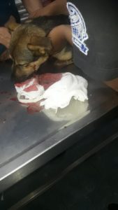 «Nos dijeron que el animal estaba ensangrentado tirado en una plaza de la zona. Cuando fuimos, había muchas personas al lado del perro y ninguna hacía nada más que mirar. El perro tenía la mandíbula despedazada. Lo llevamos a la clínica», agregó.